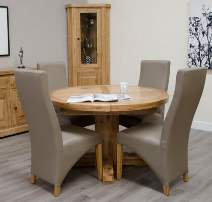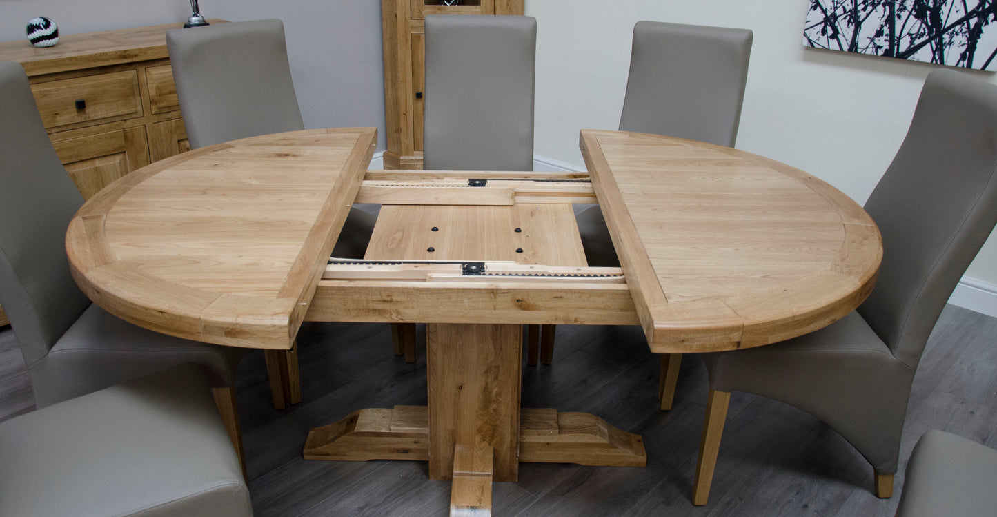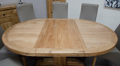 Made from solid oak this beautifully crafted round extending table comes with an extension leaf for maximum flexibility.