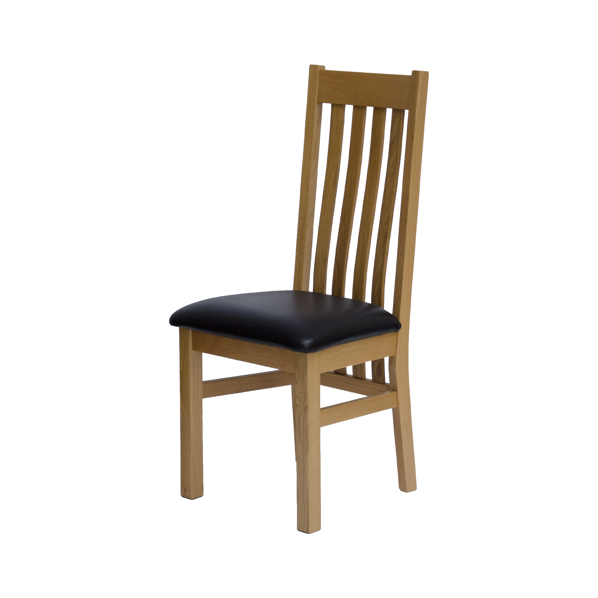 Our solid oak Perugia chair with brown bycast leather seat. Perfect with our Cotswold table range.